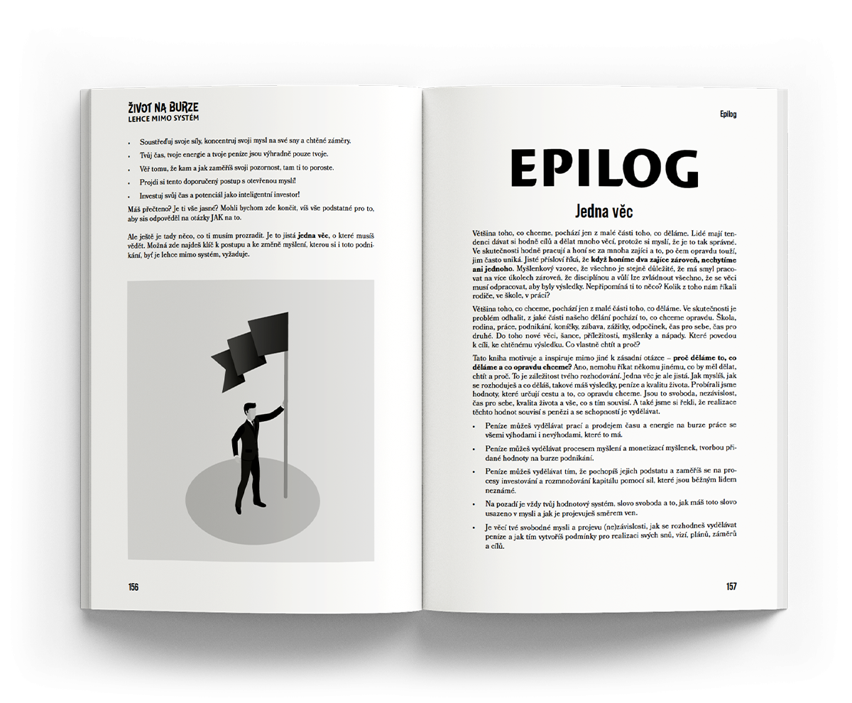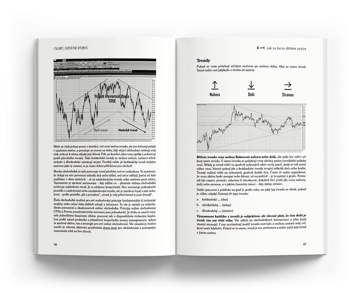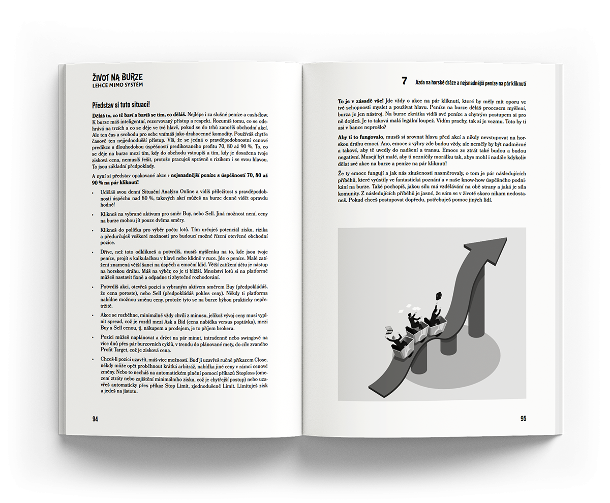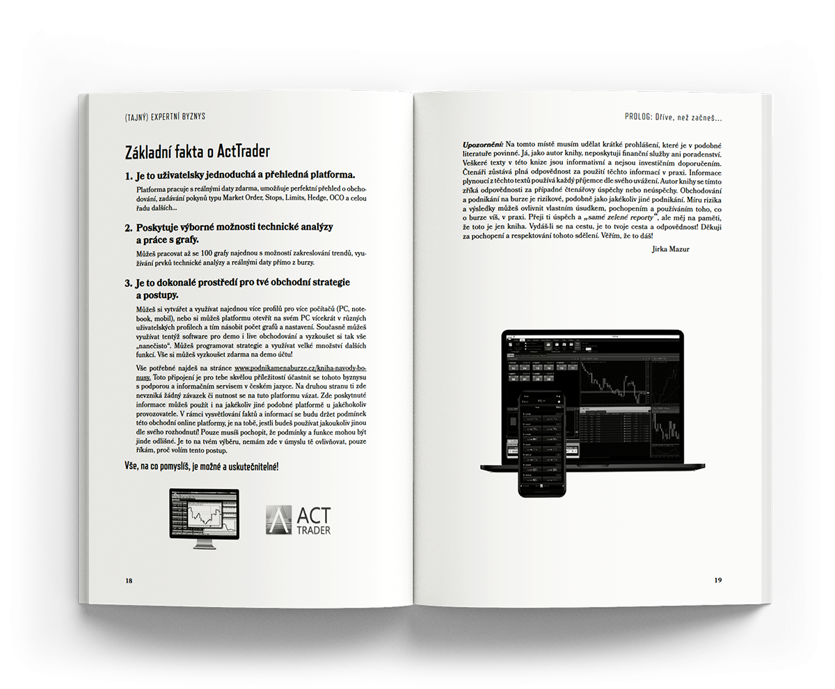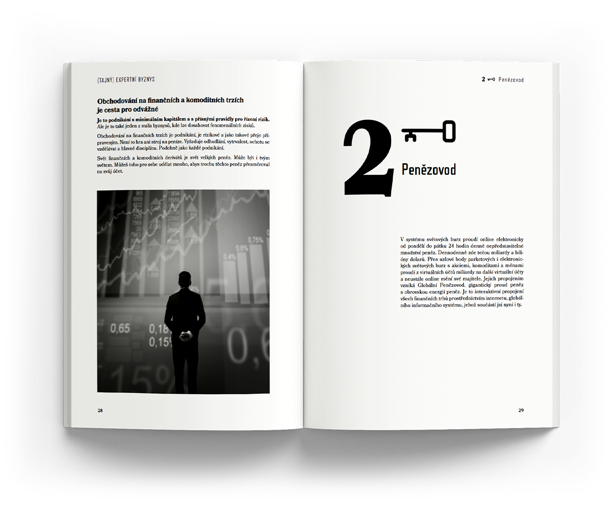 ✓ Možná na burze již podnikáte, možná s úspěchem, možná se ještě hledáte. Každopádně víte, že opakování je Matka moudrosti a víme, že vyhledávat texty a příslušné pasáže v online obsahu kurzu na webu je docela složité. Možná chcete mít texty pěkně v ruce na jednom místě. Listovat si knihou, dělat si poznámky, podtrhávat si důležité věci. Studovat věci klasicky a tak, jak jste byli zvyklí ve škole. My víme, že to má svoje výhody!