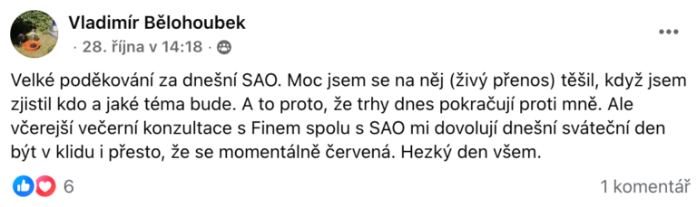 - Mimo burzu s ním řešíme jakékoliv další investování s myšlenkovém schématu Vědomého Investora a Podnikatele.