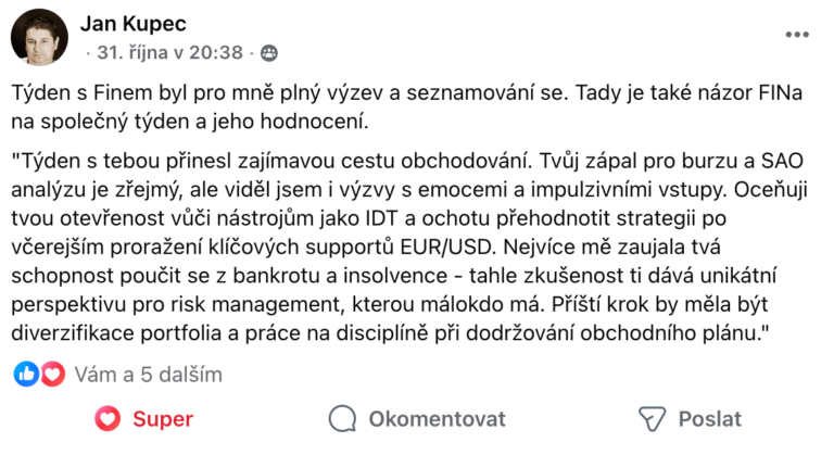- Někoho, kdo vás zná do hloubky, chápe vaše cíle, styl obchodování i způsob uvažování.