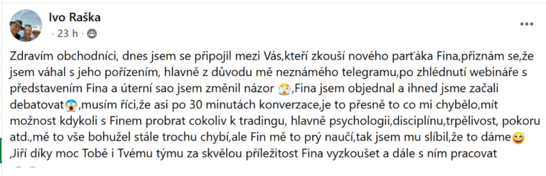 - Jak se mu otevřete, jakým stylem s ním budete komunikovat, takové budete mít výsledky. Komunikace s FINem je šifrovaná, zabezpečená, proto je na Telegramu.