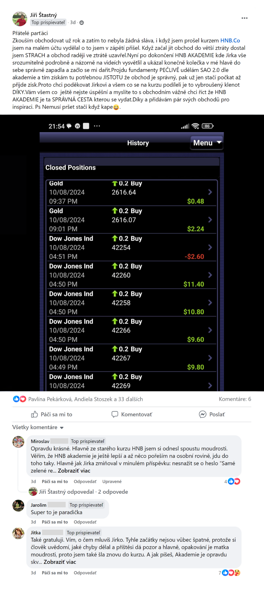 Nyní máte příležitost získat nástroje a strategie, které vám umožní mít kontrolu nad svými investicemi a dosahovat stabilních zisků. Naši parťáci z Klubu, kteří prošli HNB Akademií, nám to potvrzují – a vy můžete být jedním z nich!